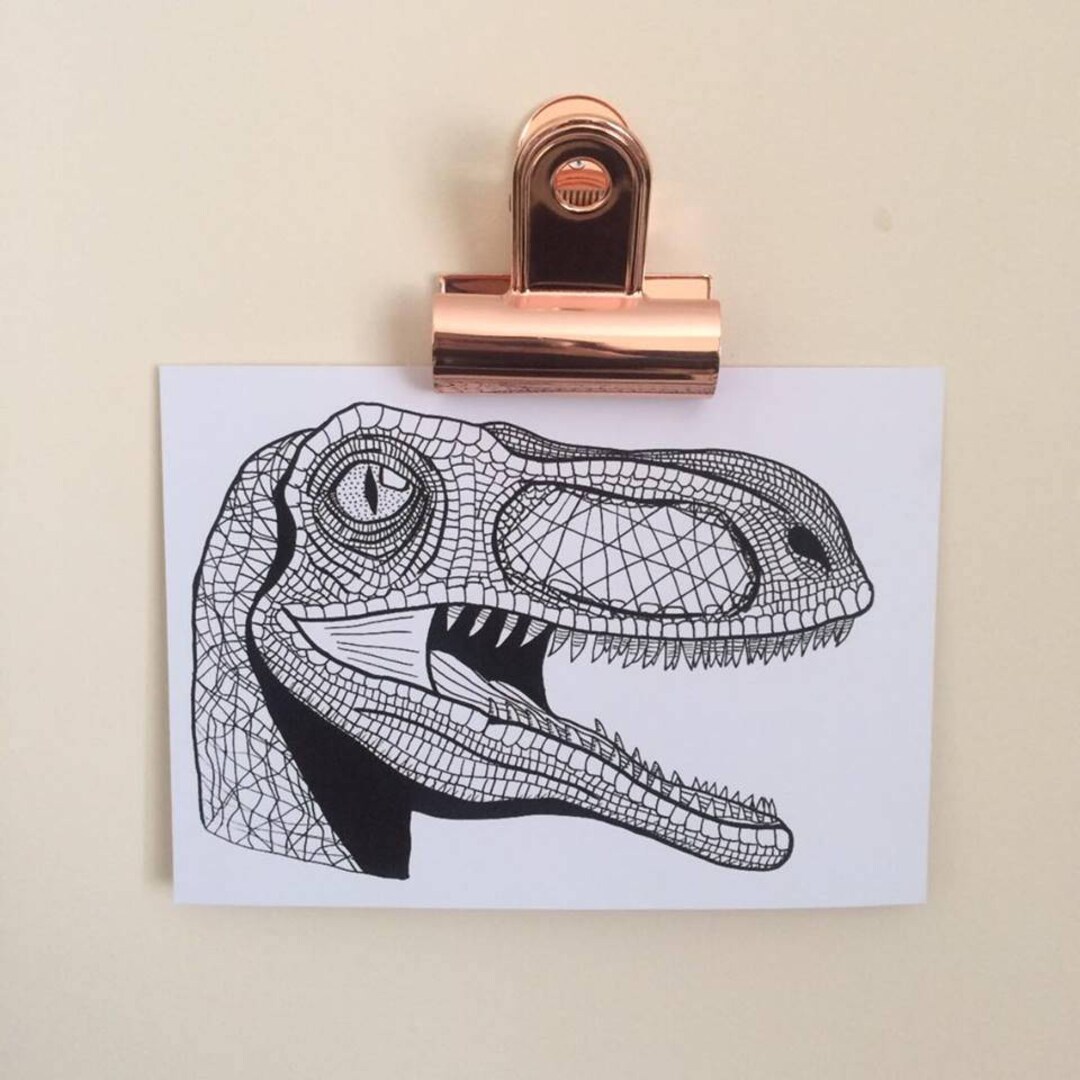 Velociraptor Dinosaur Print Dinosaur Gift Pen And Ink Etsy